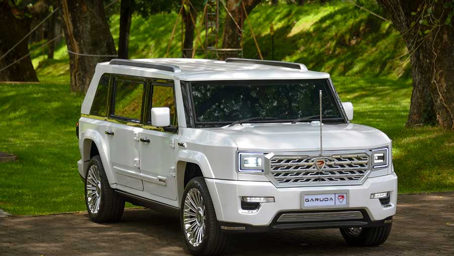 Garuda memiliki berat mencapai 2,95 ton, dimensi panjang sekitar 5,05 m, lebar 2,06 m, tinggi 1,87 m dengan desain long wheelbase yang nyaman dan lega. Selanjutnya, mobil karya PT Pindad ini memiliki daya mesin 202 PS/199 HP, transmisi AT dengan 8 percepatan, serta memiliki kecepatan maksimum hingga 100 Km/jam.