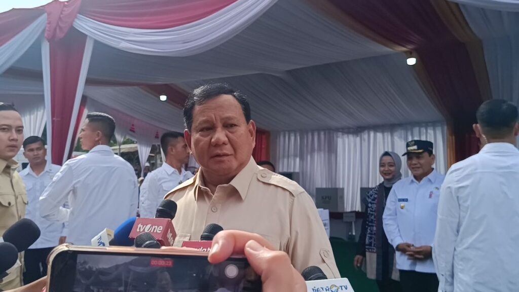 “Bagus lancar semuanya. Baik semuanya. Ya silakan, ya terserah rakyat milih yang baik, ya,” ujar Prabowo setelah mencoblos.