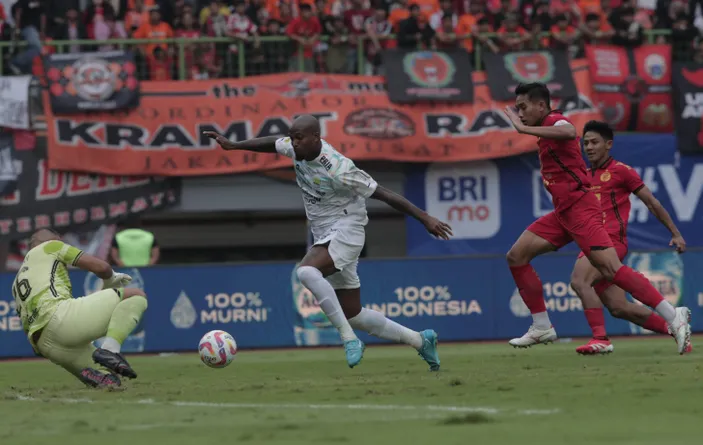 Baru tujuh menit dimulai, Persib Bandung langsung mengalahkan puluhan ribu Jakmania di Stadion Patriot Candrabhaga. Andritany Ardhiyasa gagal mengadang tendangan kerasnya dari luar kotak penalti.