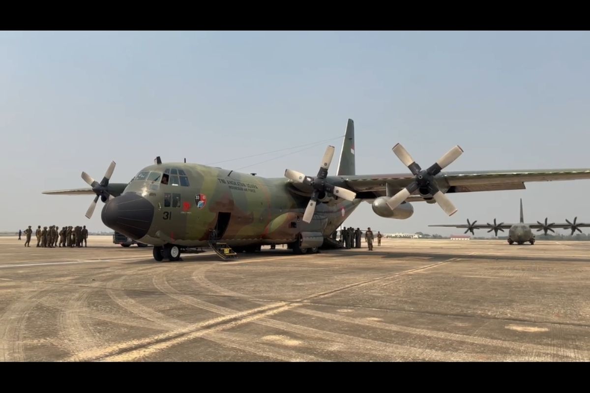 Selasa (1/4/2025), pesawat C-130 Hercules TNI Angkatan Udara (AU) tiba di Bandara Naypyidaw dengan membawa 10.446 kg bantuan untuk korban gempa di Myanmar.