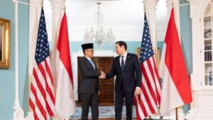 Pada hari Rabu, 16 April 2025, Marco Rubio, selaku Menteri Luar Negeri Amerika Serikat, menyambut langsung kedatangan Sugiono, selaku Menteri