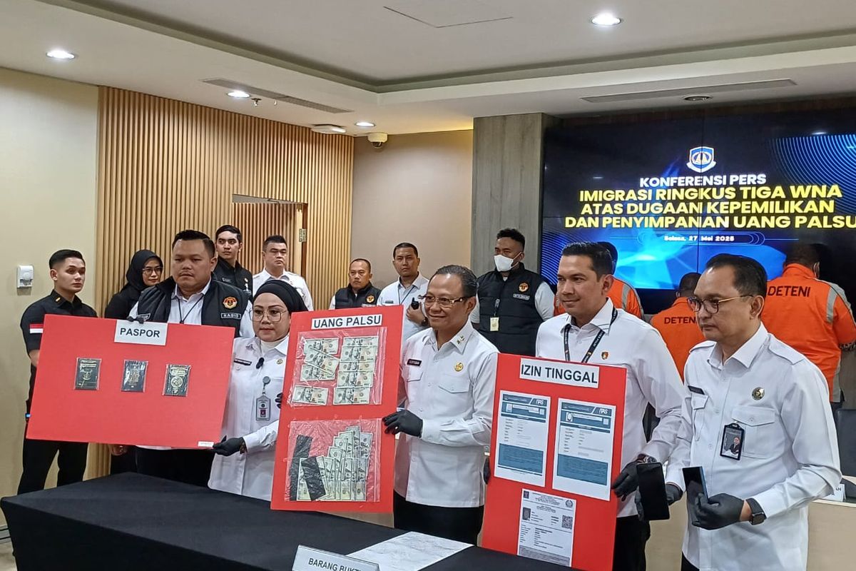 Tiga warga negara asing (WNA) ditangkap oleh Kantor Imigrasi Kelas I Khusus Non TPI Jakarta Barat oleh Kementerian Imigrasi dan Pemasyarakatan karena diduga memiliki dan menyimpan uang palsu.