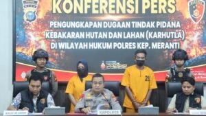 Dalam kasus kebakaran lahan seluas 1,5 hektare yang terjadi di Provinsi Riau, dua tersangka berhasil dibekuk oleh pihak kepolisian. Ajun