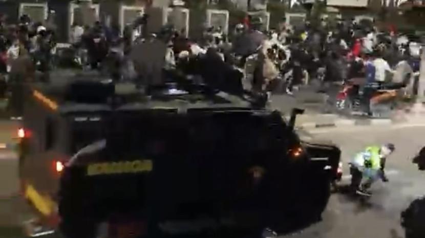 Berdasarkan sebuah cuplikan video yang tengah ramai di media sosial mengenai peristiwa tersebut, nampak sebuah kendaraan taktis (rantis) milik Korps Brigade Mobil atau Brimob melindas seorang pengemudi ojol yang tengah tersungkur di jalan sampai tewas.