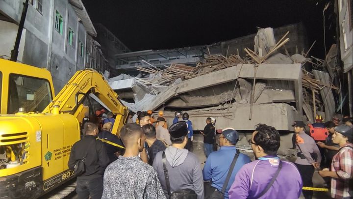Hingga hari Selasa malam, upaya evakuasi korban dalam peristiwa robohnya bangunan Ponpes Al Khoziny Sidoarjo masih terus dilakukan. (Source: Metrotvnews.com)