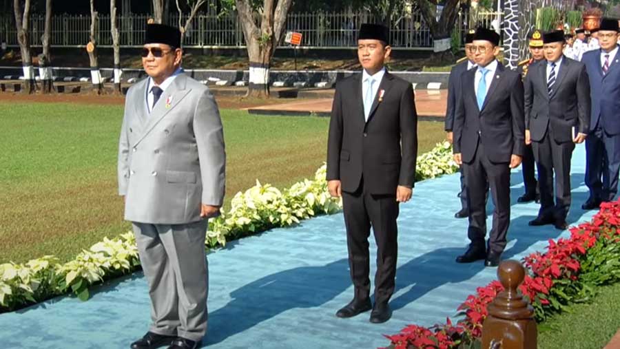 Menurut pengamatan di lokasi, Prabowo, yang mengenakan setelan jas berwarna abu-abu, tiba di lapangan upacara pada pukul 08.00 WIB. Dia didampingi oleh Wakil Presiden Gibran Rakabuming Raka, Mensesneg Prasetyo Hadi, Seskab Letkol Teddy Indra Wijaya, Wamenkomdigi sekaligus Kepala Bakom RI Angga Raka Prabowo, Kapolri Jenderal Listyo Sigit Prabowo, dan Panglima TNI Jenderal Agus Subiyanto.