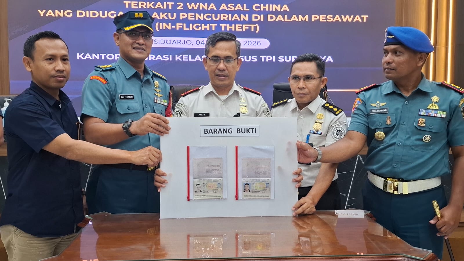 Dikabarkan bahwa akibat telah mencuri uang salah seorang penumpang asal Malaysia dalam pesawat dengan rute Jakarta-Surabaya, dua orang berkewarganegaraan Cina dibekuk petugas Kantor Imigrasi Surabaya, Jawa Timur.