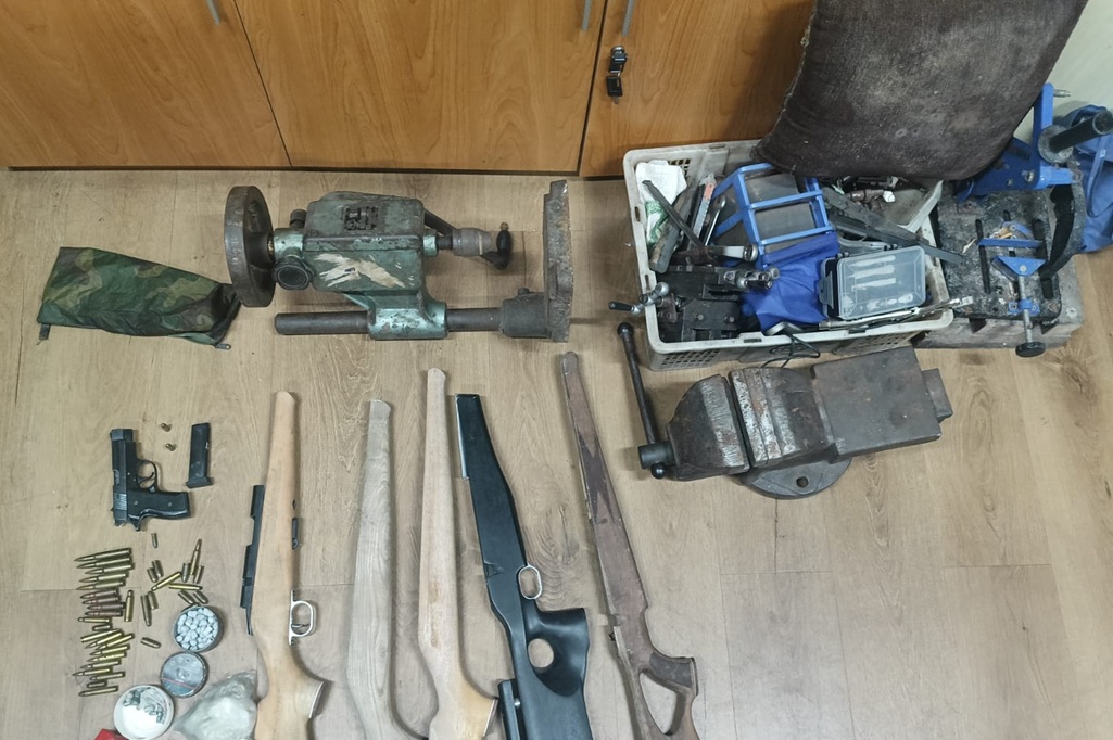 Pada saat pemeriksaan dilakukan, pihak kepolisian berhasil menemukan empat popor laras panjang beserta dengan sejumlah alat pembuatan senpi di rumah Ki Bedil.